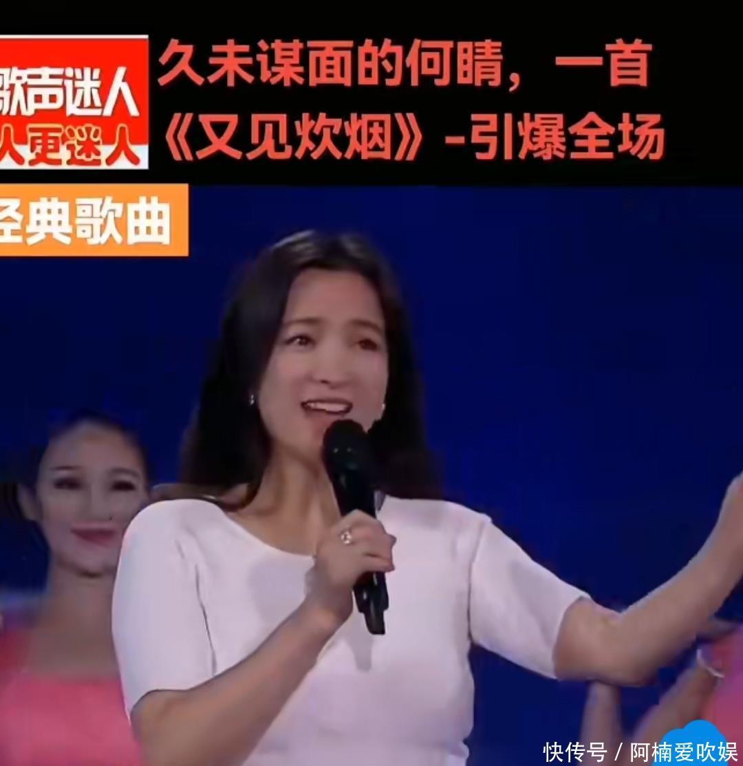 关于何晴生前最后一次公开亮相,参与综艺演出,坊间有两个版本。其一是说她在活动中,登台献唱了《又见炊烟》;其二是说她和《水浒传》的一众演职人员好友在一起,趣谈当年《水浒传》拍摄的细节。她表演唱昆曲选段“良辰美景奈何天,似这般都付与断井颓垣”;她低声浅吟“又见炊烟升起,暮色照大地”……