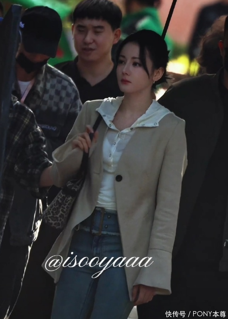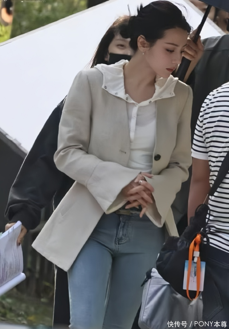 迪丽热巴的上装搭配,堪称 “职场休闲风” 的教科书。外层选择的浅米色西装,自带温柔高级的质感,不同于深色西装的严肃刻板,浅米色更显轻盈柔和,完美适配日常或轻正式场合;最巧妙的是袖口的微阔设计 —— 没有传统西装的紧绷束缚,微阔的版型增添了几分慵懒感,让西装跳出 “职场穿搭” 的固有框架,多了几分随性自在,行走时袖口自然垂落,自带动态美感。